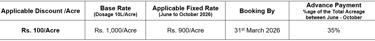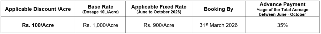We are pleased to offer a pre-season discount to our major customers against an advance booking of acreage during the high season June-October 2026: