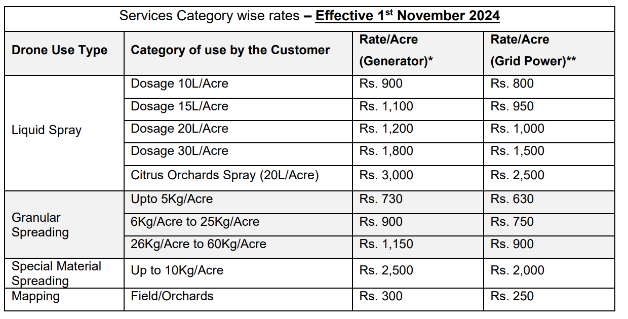 Services Price List